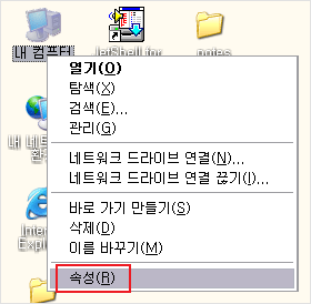 ① 컴퓨터의 바탕화면 "내 컴퓨터" 아이콘에서 마우스 오른쪽 단추를 누르면, 메뉴가 나옵니다.