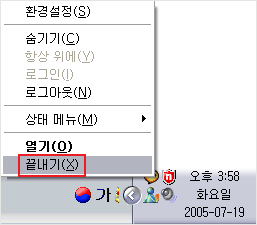 ① 윈도우 하단의 날짜와 시간이 표시되는 "트레이" 부분을 보시면 항상 동작되고 있는 프로그램들이 있습니다.