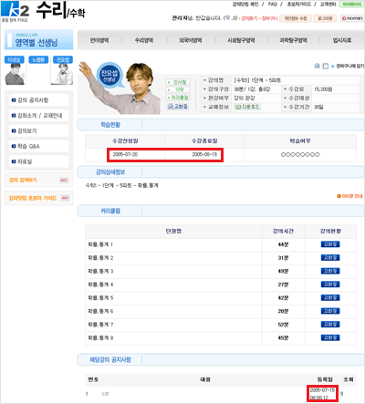 각 영역별로 들어가서 신청한 강의 선생님을 클릭합니다.