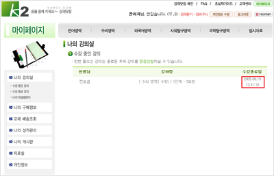 또는 My Page > 나의 강의실 > [ 수강 중인 강의]를 클릭합니다.